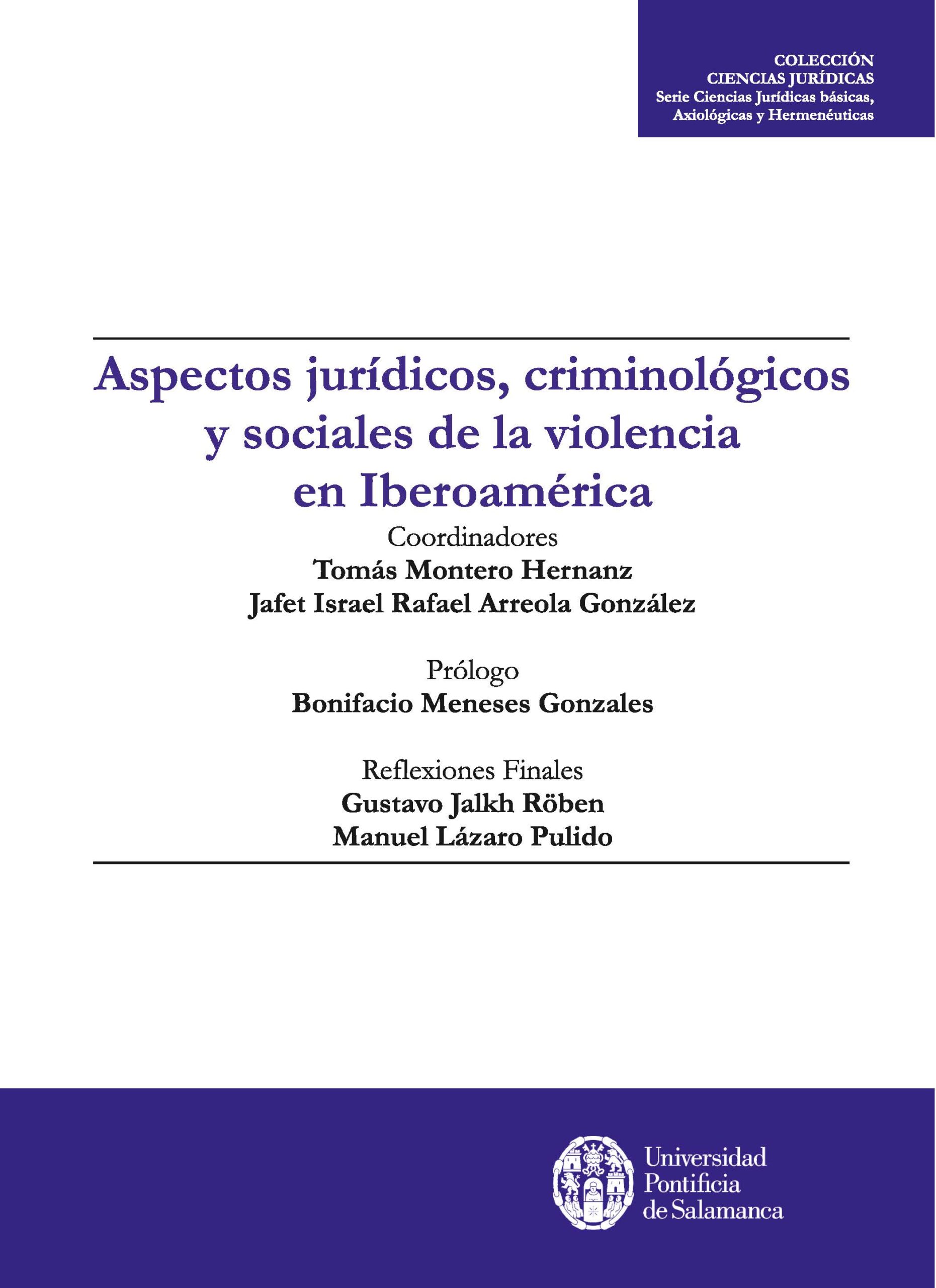 Tomás Montero Hernanz, Jafet Israel Rafael Arreola González (Coords.), Bonifacio Meneses Gonzales, Gustavo Jalkh Röben, Manuel Lázaro Pulido. Aspectos jurídicos, criminológicos y sociales de la violencia en Iberoamérica. Salamanca: UPSA Ediciones, 2026.