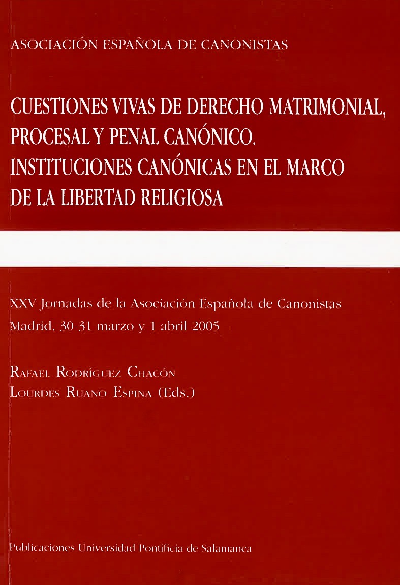 CUESTIONES VIVAS DE DERECHO MATRIMONIAL PROCESAL Y PENAL CANÓNICO. INSTITUCIONES CANÓNICAS EN EL MARCO DE LA LIBERTAD CRISTIANA. XXV JORNADAS DE LA ASOCIACIÓN ESPAÑOLA DE CANONISTAS
