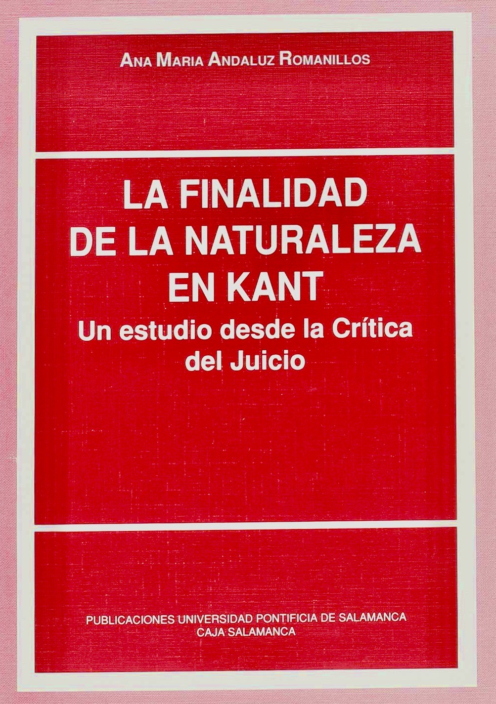 Ana María Andaluz Romanillos. La finalidad de la naturaleza en Kant. Un estudio desde la Crítica del Juicio. Salamanca: UPSA Ediciones, 1990.