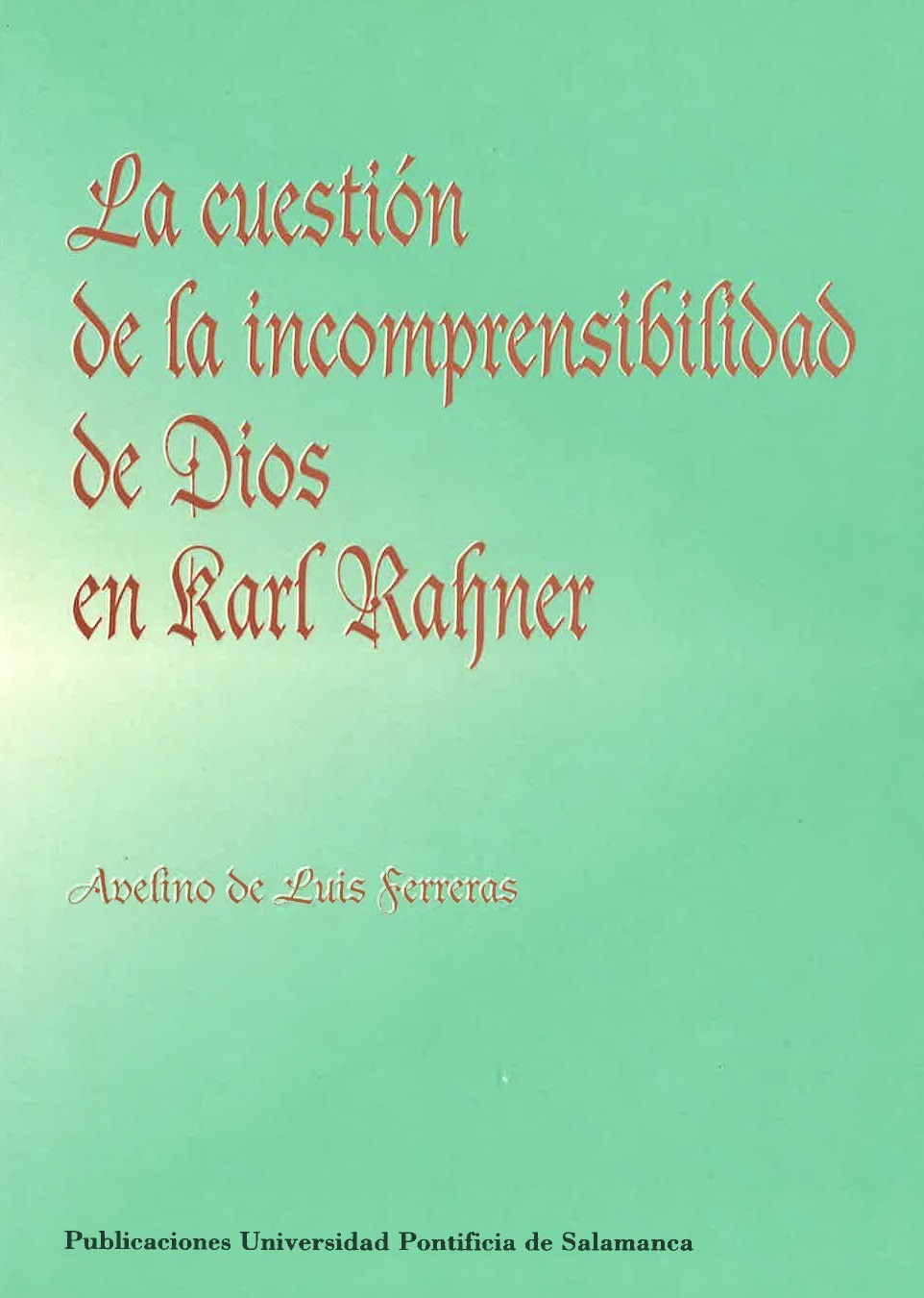 Avelino de Luis Ferreras. La cuestión de la incomprensibilidad de Dios en Karl Rahner. Salamanca: UPSA Ediciones, 1995.