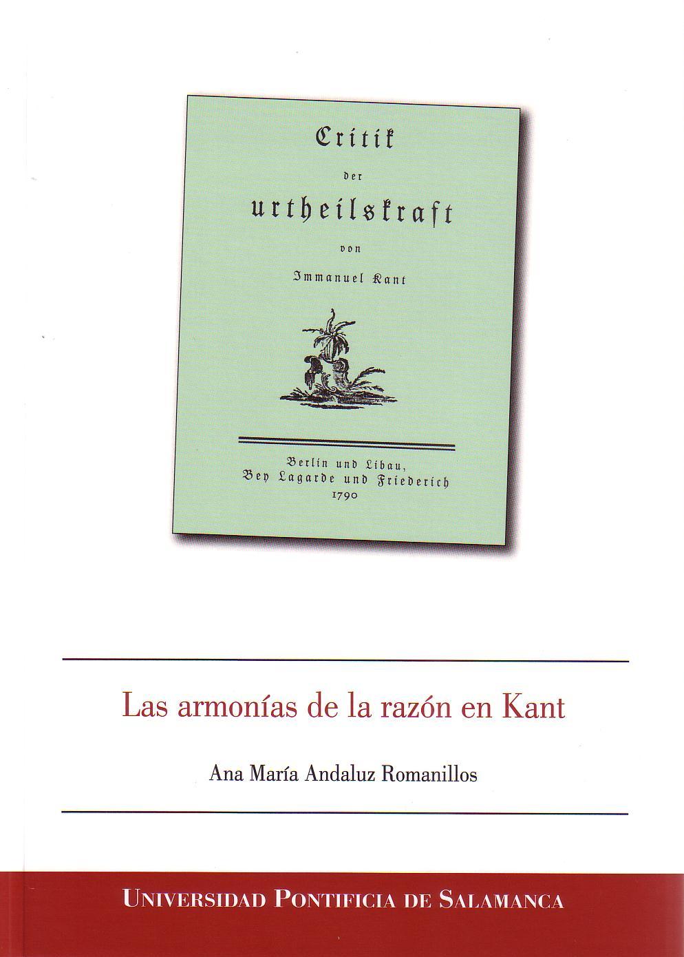 Ana María Andaluz Romanillos. Las armonías de la razón en Kant. Salamanca: UPSA Ediciones, 2013.