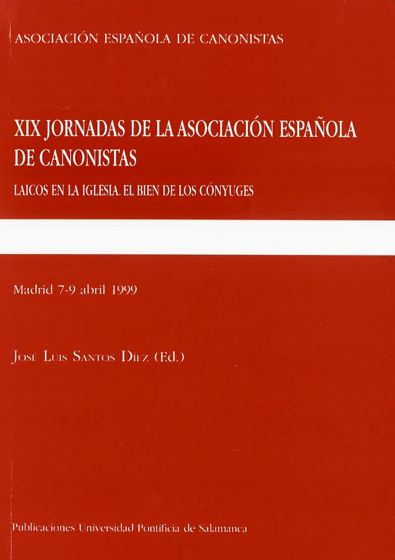 XIX JORNADAS DE LA ASOCIACIÓN ESPAÑOLA DE CANONISTAS. LAICOS EN LA IGLESIA. EL BIEN DE LOS CÓNYUGES