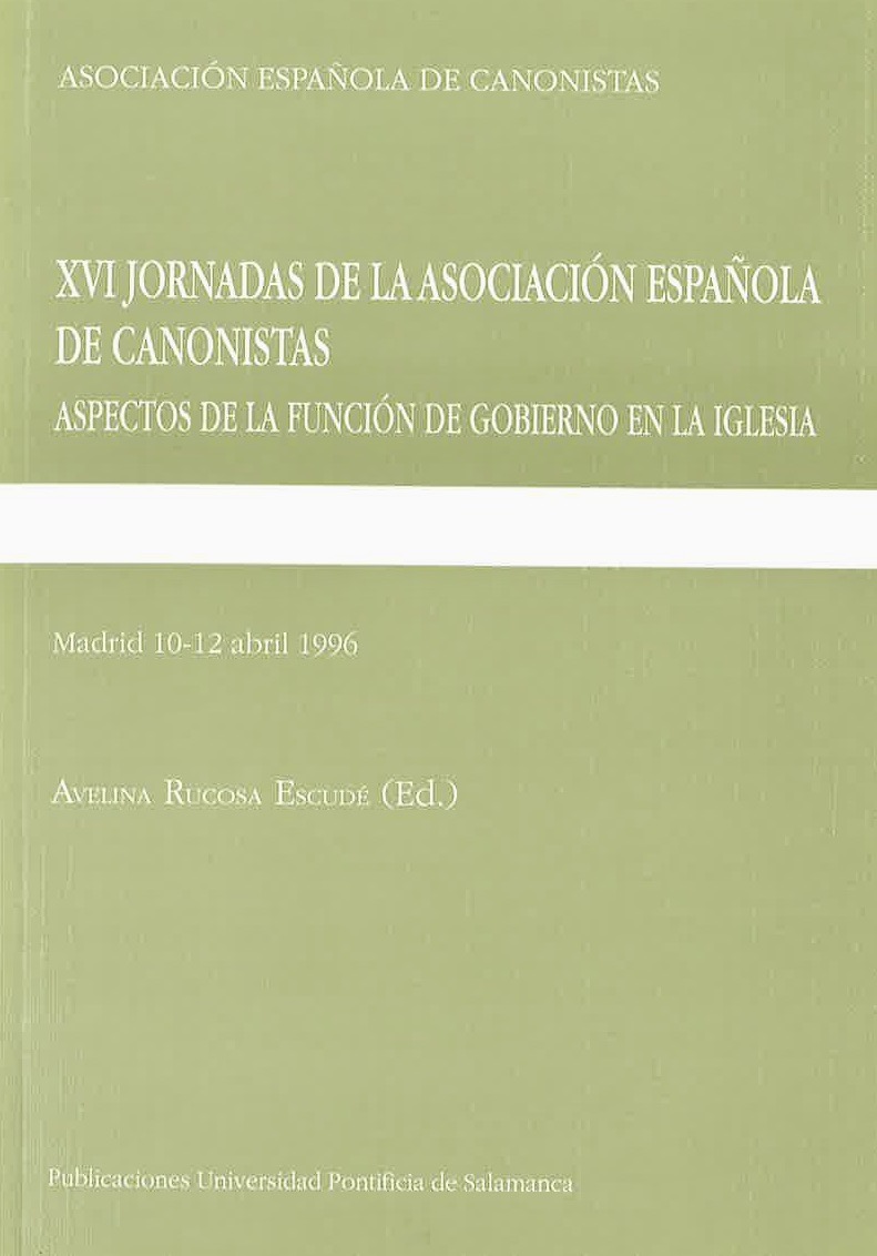 XVI JORNADAS DE LA ASOCIACIÓN ESPAÑOLA DE CANONISTAS: ASPECTOS DE LA FUNCIÓN DE GOBIERNO EN LA IGLESIA. MADRID 10-12 ABRIL 1996